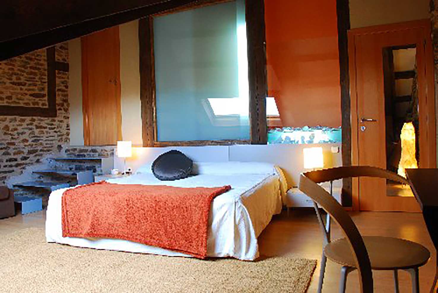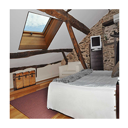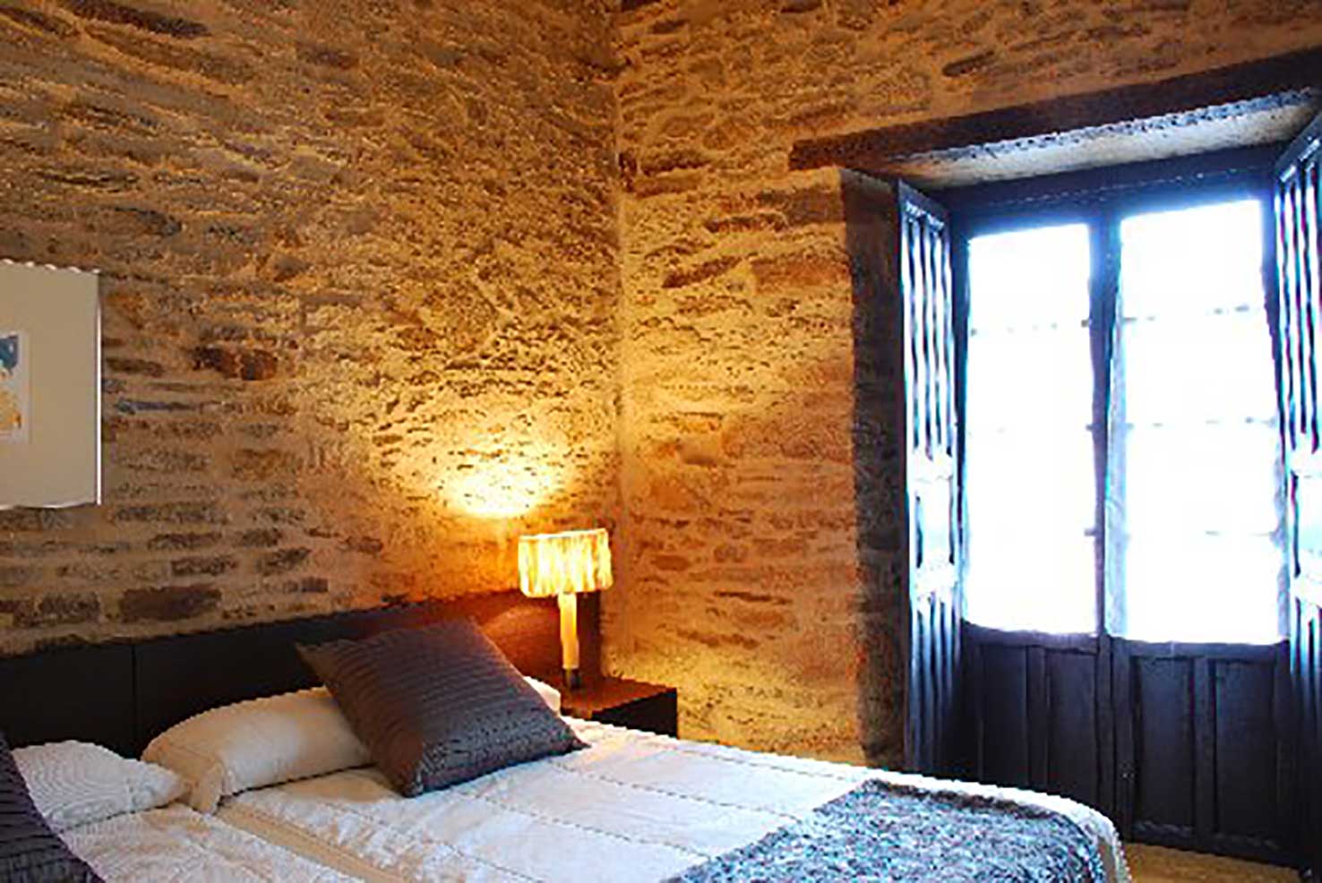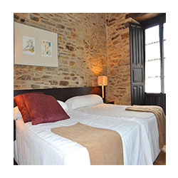 Desde sus balcones se puede hacer volar la imaginación a aquellos tiempos en que los mercaderes, frailes, caballeros… recorrían y llenaban de bullicio la Villa. (dos camas-salón)